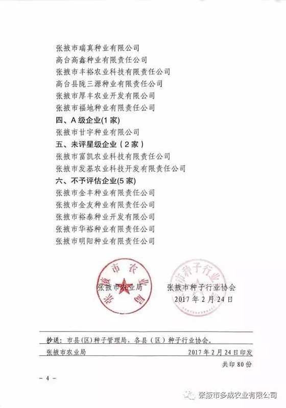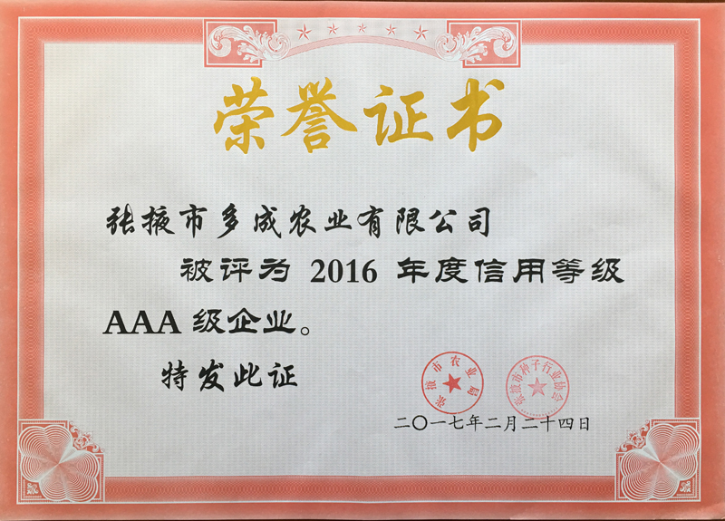 熱烈祝賀張掖市多成農(nóng)業(yè)有限公司被評為2017年度信用等級AAA級企業(yè)! | ||